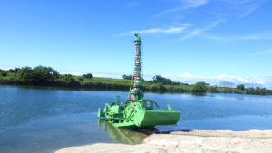 大阪・関西万博では、コマツと共同で「未来の都市」パビリオンに出展し、「未来の水中工事」というテーマで、実証中の新たな水中施工ロボットについて発信しました。自動制御やICT機能を使った遠隔操作によって、誰もが簡単に活用できる水中施工ロボットを目指しています。