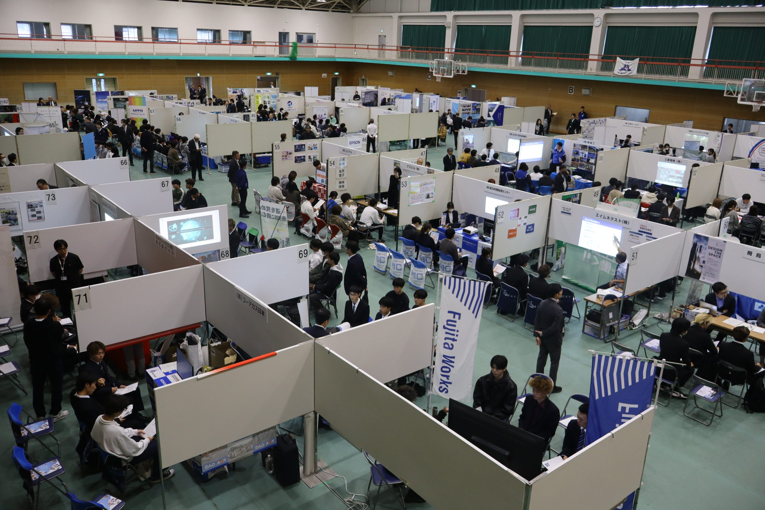 令和7年12月2日(火)、霧島市隼人体育館にて「令和7年度高専生のための地域企業研究会」を開催しました。本校の産学官交流組織である鹿児島高専テクノクラブ(KTC)会員企業78社がブースを設置し、学生・保護者含め約350名が参加しました。本研究会は学生が地域企業についてより理解を深めることを目的としており、地域創生推進事業の一環として継続開催しているものです。